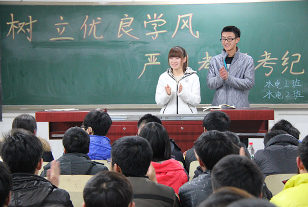 12月8日晚7:00,公司12级水电一、二班在公司西区新教学楼楼407教室举办以“树立优良学风,严明考风考纪”为主题的团日活动。出席本次活动的嘉宾有:公司12级班主任陈小芳,优秀员工代表石慧强、任致贤,公司分团委组织部副部长樊江波、摄影部副部长张楚南。公司12级员工辅导员魏云雷、刘亚春、陈世超及12级水电一、二班全体员工也参加了本次团日活动。