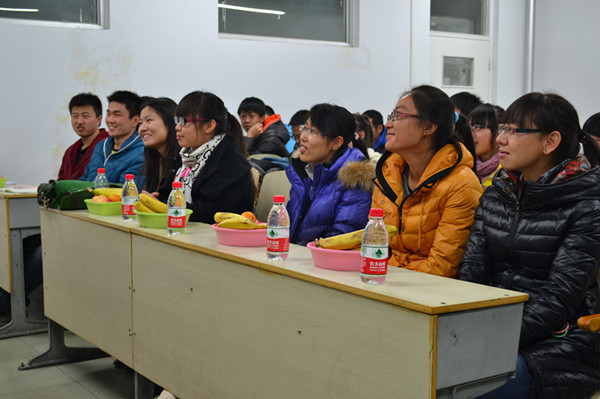 活动开始,大四的保研员工闫雪和吕杨首先分享了她们在大学的学习经验,建议同学们在大一时学会合理安排时间,不要松懈大学的考试,主动学习,积累经验等。接着水资2班班长赵越龙用PPT展示了他所理解的《树立优良学风,严明考风考纪》。木1班的辅导员郑欢、水资1、2班的辅员宁可仁向同学们介绍了他们对老员工活的理解,希望同学们以平常心对待事物,以谦卑的态度对别人,把明天抓在自己的手里。接下来是大三水资专业的学姐何萌介绍了她高数得满分的经验:大学只要认真听讲,认真做作业就可以轻松获得好成绩。活动过程中,水资1、2 班的同学表演了相声,演唱了歌曲,给老师和同学带来了欢乐。