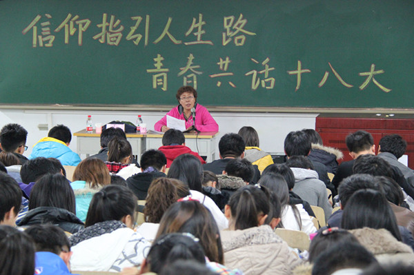 11月6日晚7:00,公司为了响应十八大的号召,在公司西区新教学楼307举行了以“信仰指引人生路,青春共话十八大”为主题的讲座,本次讲座的主讲老师是食品与科学工程公司原党委书记乌兰。公司各个班级的员工代表参加了本次活动。