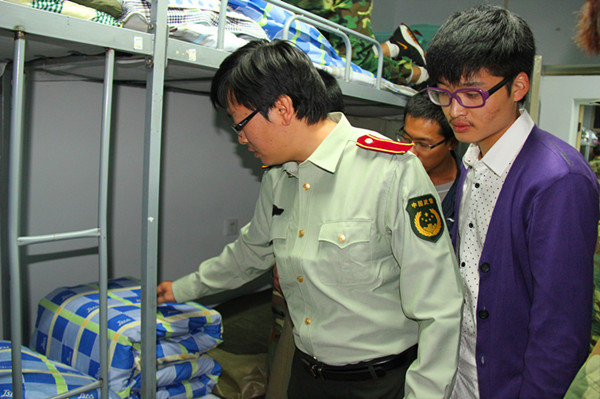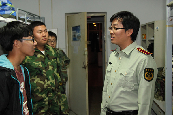 9月14日晚9:00,公司各连指导员在公司杨逸隆老师的带领下,来到2012级新生宿舍为同学们送温暖。指导并帮助同学们整理宿舍内务,强调了公司宿舍内务评定标准,与同学们进行交流与沟通,帮助新生们解决困惑与难题。