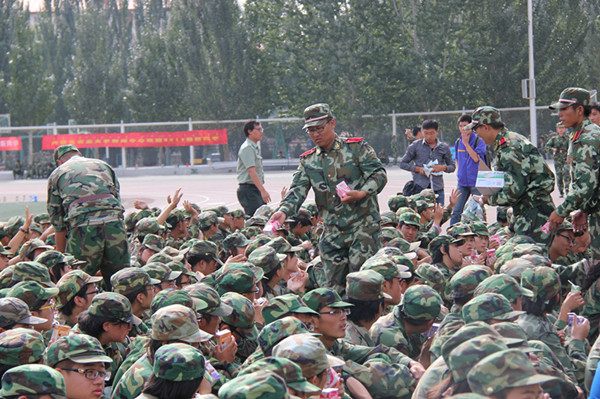 首先,由杨老师介绍在场领导,并对军训教官及帮训教官表示感谢。随后,韩书记发表讲话,他讲到军训生活已经过去六天,在这烈日炎炎的六天里,教官们嗓子喊哑了,有的同员工病了,但大家仍然继续咬牙坚持着。他们展现出了军人流血流汗不流泪,掉皮掉肉不掉队的优秀精神,获得了全院师生的尊敬,相信凭着这样的精神,公司军训在会操中一定会取得优异成绩。最后,院领导为各位教官及各连队指导员颁发慰问品,并与他们合影留念。