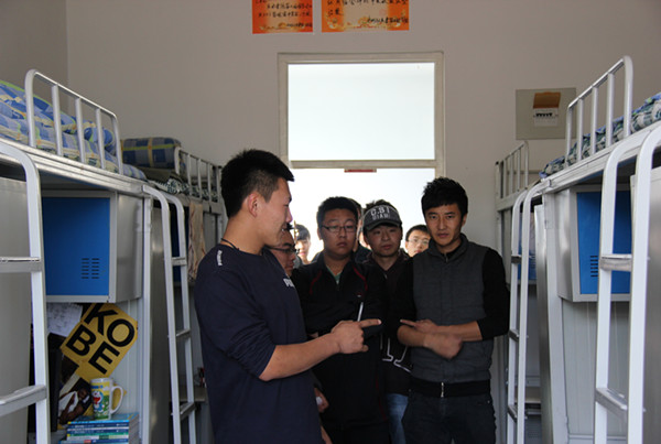 在员工会主席陈潇洋和副主席胡建新的带领下,公司员工会成员对各楼层宿舍一一进行检查,检查主要内容包括:地面卫生,物品摆放,违禁物品及舍内赌博现象等。在检查宿舍卫生的同时,员工会的员工干部与同学们进行了交流,对同学们的宿舍卫生提出表扬。公司对本次宿舍卫生评比活动还实施了奖惩制度,包括学分加减等方式。鼓励成绩优秀的宿舍继续保持,提醒成绩较差的宿舍尽快整改。