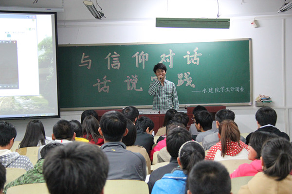 会议由主持人宣布开始,对出席的各位嘉宾表示感谢,并介绍三下乡——文化下乡,科技下乡,卫生下乡的意义。随后四子王旗分队队员韩永智解说PPT,讲述了三下乡活动的足迹,实践活动的内容主要分为“净化心灵,保护环境”“关注民生,回馈社会”“弘扬美德,尊老爱幼”三个部分,内容丰富多彩。然后由水利优秀毕业生王志超展示“情系黄土高原的父老乡亲”的PPT,实践活动为期八天,期间他们学以致用,在当地进行实地测量,埋设管道,支教活动,重走“下乡”路,温暖人心。之后,由参加暑假实践活动的员工代表第十四届员工分团委副书记李志恒,刚德尔,王太福,办公室主任樊浩伦分别讲述实践活动的经历,感触。参加讨论会的同学踊跃提问,员工代表一一详细解答,积极互动。最后,专职辅导员老师吴青海对本次活动进行了总结,阐述了三下乡活动对同学们生活和学习的帮助和影响,活动在歌声中《至少还有你》中结束。