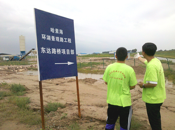 早上7:00同学们来到了民生渠截流大坝施工现场,据现场工作人员介绍:这是当地近年来最大的一项水利工程,它可以限水3.2米。这项工程一旦建成,它将解决下游土地的灌溉,更好的推动了当地的经济发展。同学们参观了施工现场,操作了RTK等一系列仪器,了解了施工的注意事项等。