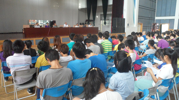 7月4日下午6:00,公司在西区文体馆举行了11级测量实习动员大会,出席本次动员大会的有太阳成集团tyc33455党委副书记、副经理韩瑞平,测绘专业老师王耀强,葛岱峰,刘全明,马腾、李彪。以及公司11级所有员工。