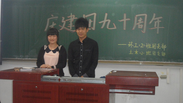 5月15日晚7:30,环工二班和土木二班在新楼404开展了团日活动。此次团日活动围绕的主题是“庆祝建团90周年”,到场的有全体环工二班、土木二班的员工,以及团委的代表。