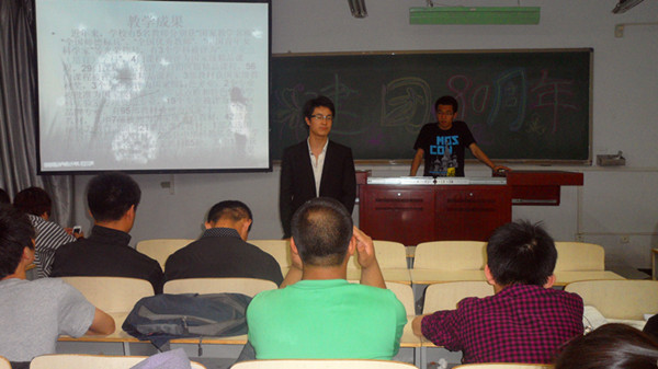 活动开始,舒建国介绍了本次团日活动的主题以及有关水利双语专业所涉及的内容。并邀请刘建华谈了自己的看法,他谈到作为一名大一员工,应该抓紧时间学习一些对自己有用的知识,利用图书馆中的资源充实自己。活动中还介绍了一些有关校庆的信息,主持人通过幻灯片讲述了农大的校史,其中包括农大的基础设施建设、学科专业、教学成果、社会荣誉以及今后的奋斗目标。接下来介绍了乌兰夫同志的生平事迹,希望通过乌兰夫的先进事迹勉励我们,教育我们应该向乌兰夫同志学习。最后辅导员舒建国还组织同学们观看《建党伟业》,使同学们从中学习革命先烈的高尚精神。