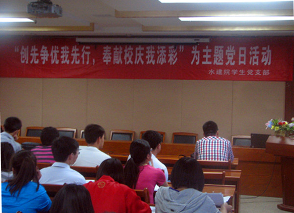 5月11日晚7:00,公司分党委中低年级水工支部于水利楼502举行了主题为“创先争优我先行,奉献校庆我添彩”党日活动,对“黄岩岛事件”进行讨论学习。此次党日活动由公司中低年级水工支部书记杨逸隆老师组织,组织委员主持,参加此次活动的同学为公司中低年级水工支部的党员、预备党员及14、15期入党积极分子。