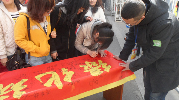 3月12日中午12:00,公司在西区宿舍楼举办植树节签名活动,本次活动由公司分团委两分会承办,在场的员工干部有李志恒,丁莹,以及分团委两分会的干事。