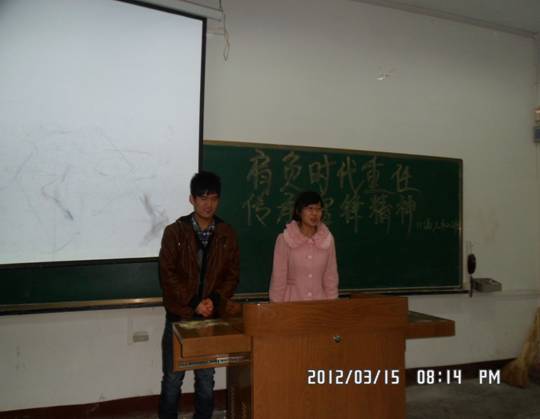 3月17日晚7:30,公司11级土木二班在旧教学楼104开展了以“肩负时代重任,传承雷锋精神”为主题的团日活动。本次活动由公司分团委组织部白勇、马晓凯及土木二班的全体同学参加。