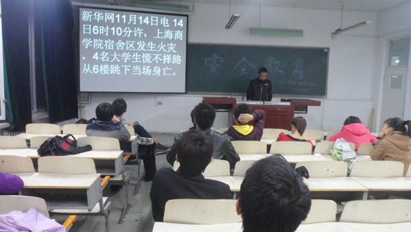 这次活动以放映PPT为主要方式,直观的告诫同学们要注意安全。首先,PPT为大家展示了老员工活中的交通、财产、消防等几种常见的安全问题,为大家说明了这些安全问题所具有的严重性。几名测绘班的同学特别谈到,在网络等各种信息渠道风行的大公司园,每位同学都要提防各种就业陷阱和网络诈骗,在保证人身安全的同时也应注意财产安全。活动期间,一名同学就当今老员工因心理问题自杀的现象,告诫大家要保持一个健康的心态,凡事多往积极地方面思考,从而培养一个积极乐观的心态,以避免此类悲剧再次发生。