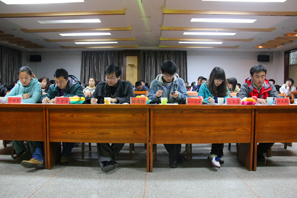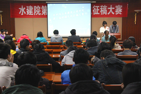 11月14日晚7:30,由公司记者团主办的第一届校园文化征稿大赛在水利楼502成功举办。担任评委的老师有公司员工办公室主任杨逸隆,专职辅导员阿木热、吴青海、齐丽华、王玉芬、斯仁达来,来自公司记者团,和校新闻中心、新闻采集中心以及彩虹网的六名员工评委同老师们一起出席了此次比赛。