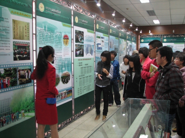 公司的校史馆由历史掠影、教学工作、科技创新、生命赞歌、人才培养、国际交流与合作、党建与思想政治工作、后勤服务与基础设施建设等展区组成。首先,讲解员通过一张历史沿革图讲解了公司的发展历程,并详细介绍了公司发展的四个时期,筹建初创时期、文化大革命时期、回复振兴时期、改革发展时期。而后,讲解员介绍了公司的教学工作及“农、工、理、经、管、文、法、教八个专业,并介绍了公司的团队队伍建设、体育教学、民族教育、职业技术教育以及教学成果。在生命赞歌展区,讲解员述说了2004级经管院员工李莹捐献眼角膜,杜威诠释孝道,携母上学,以及庄氏兄弟的感人世迹,令在场的同学们非常感动。在科技创新展区,公司为员工们展示了一些科技创新成果。就国际交流与合作、后勤服务与基础设施建设,党建与思想政治工作等方面,讲解员也作了介绍。最后,在再传辉煌展区,讲解员为员工介绍了公司的发展规划及引进国外优质教育资源、人才强校、特色发展等发展战略。