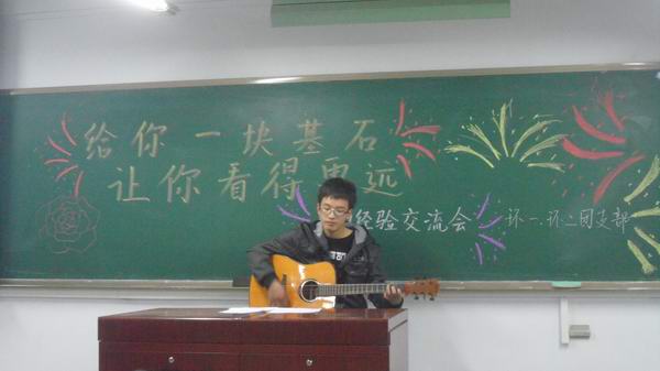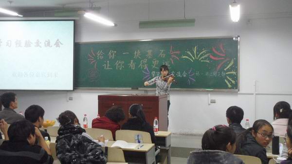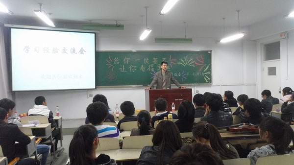 最后是导员的精彩讲话,与其说是学习经验交流,不如说是生活经验交流,同学们从中学到了许多。活动中的搞笑相声,铿锵有力的诗朗诵,一首首优美的歌声都体现出了同学们积极向上的精神。