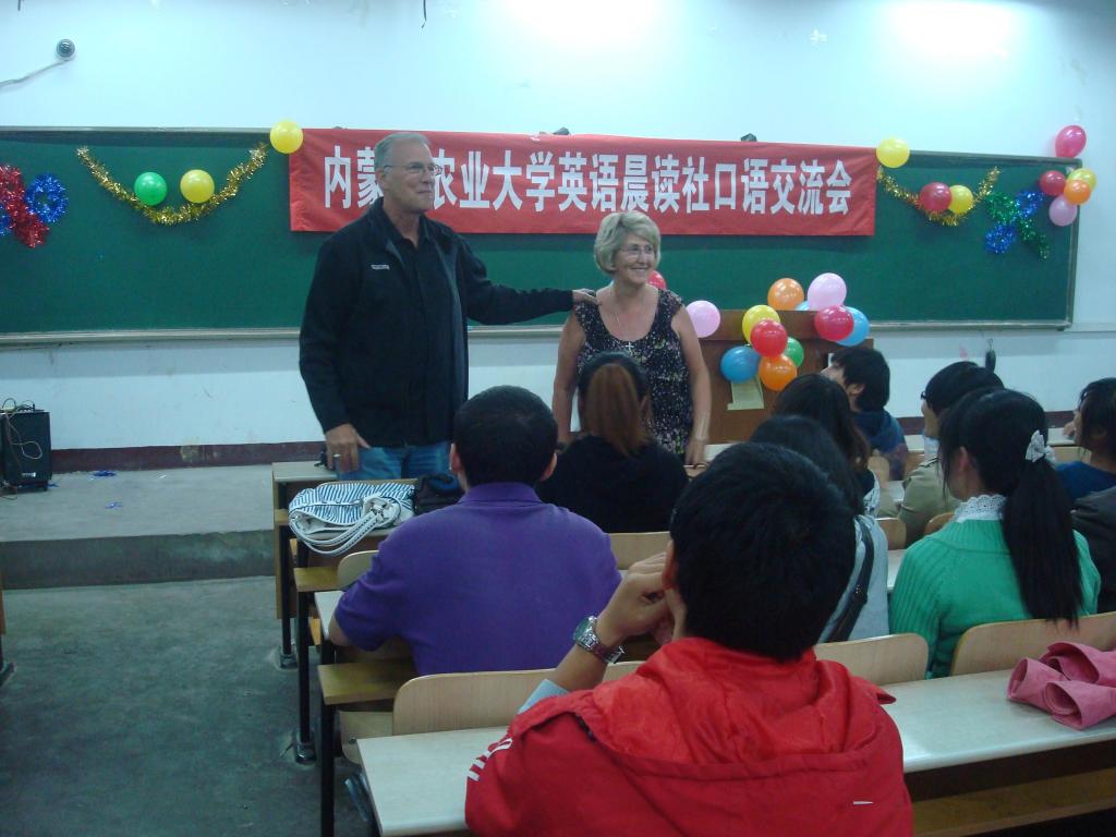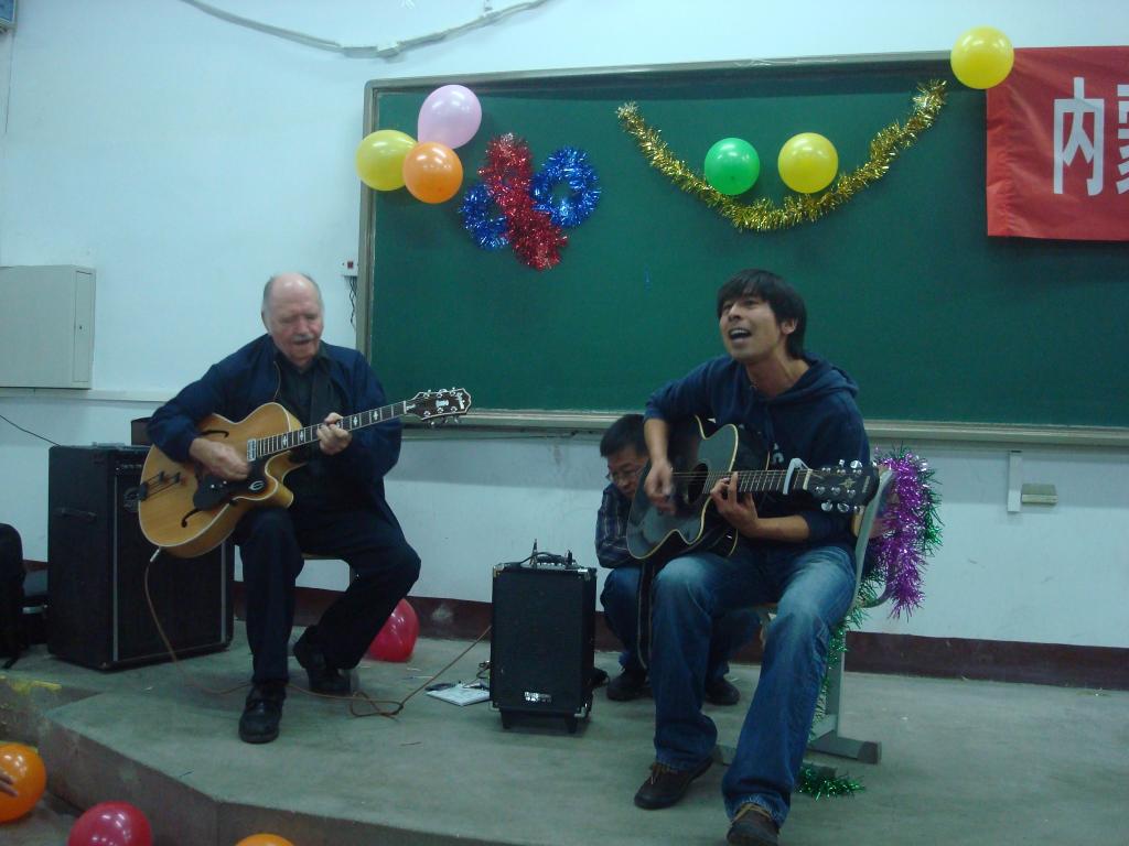 随后,一位75岁的外教老师为大家弹奏了吉他,轻快地欧美风格演奏使同学们赞不绝口;团队的其它成员还为大家演唱了好听的英文歌曲,并赢得了阵阵掌声。公司同学也不甘示弱,为尽宾主之仪大家一起为他们演唱了公司的校歌,有的同学还为大家演唱了蒙语、英语歌曲等,并得到了外国朋友的赞扬和褒奖。