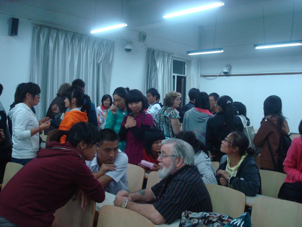 时代在进步,社会在发展,英语已成为当代员工学习的一门必修课。为提高同学们学习英语的积极性,并规范同学们的学习方法及英语发音,由公司10级测绘一班的王慧霞创办的英语晨读社于9月20日晚7:30在旧楼202举行了口语交流会。来自其他高校的11位外教老师亲临现场与晨读社的同学们共同进行了交流学习。