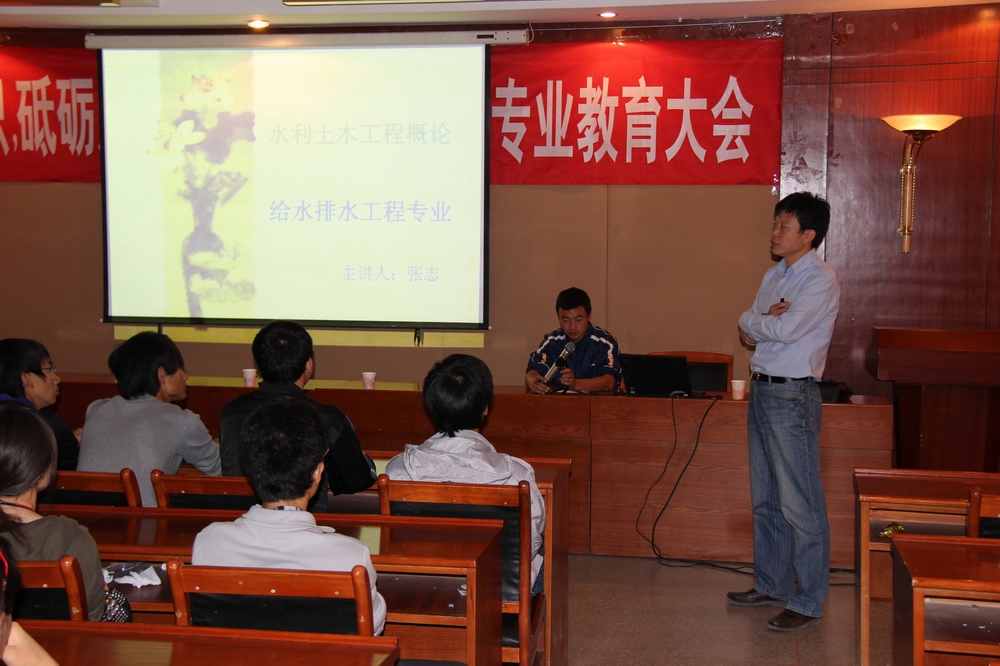 随后,我们还了解到给排水专业的科学内涵是以水的社会循环为研究对象,以生物学、化学、水力学等科学理论为学科基础的一门综合性学科。张志老师还为同学们介绍了给排水工程专业的历史变革及公司给排水专业的情况,并将公司适应社会主义现代化建设需要,德智体美劳全面发展的培养目标让同学们有了一定的认识。最后,他还涉及了一些公司的主干学科和主要的课程设置、毕业生应获得的知识和能力及本专业未来的就业前景等知识。