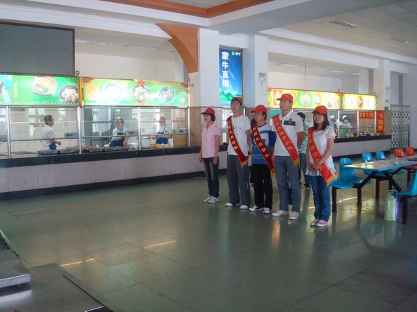 为了维护公司校园环境的整洁,和食堂的公共秩序,由公司组织并设立的“文明督查岗”,主要工作内容是从6月8日起到14日每天于员工打饭的高峰期在公司食堂门口站岗,以及在校园中捡取垃圾等。