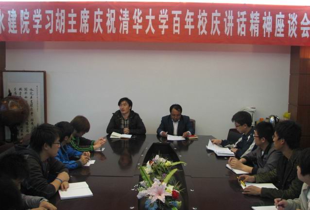 4月27日晚7:00,公司在水利楼513会议室召开了学习胡主席庆祝清华大学百年校庆讲话精神座谈会。参加本次会议的领导有太阳成集团tyc33455党委副书记副经理韩瑞平,公司分团委书记叶德成,公司专职辅导员阿木热及公司各年级代表。