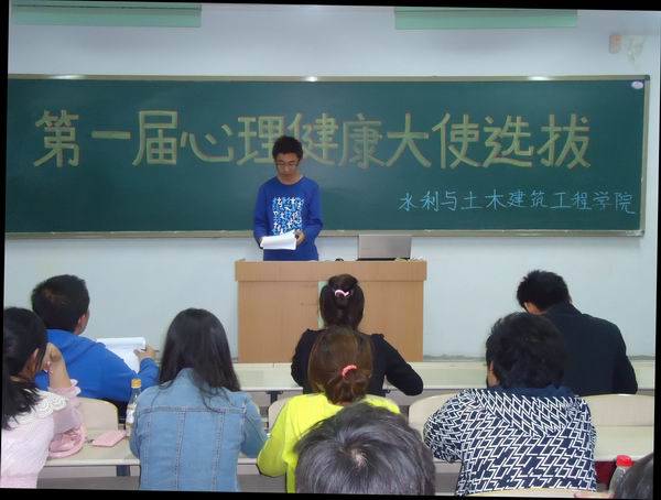 5月7 日晚7:30,公司第一届心理健康大使选拔大赛在校西区新教学楼103教室隆重举行。参加本次比赛的评委有校心理教育协会咨询部副部长徐曜峥,公司员工专职辅导员王丽艳以及员工会心育部部长郭海珍及参赛员工。