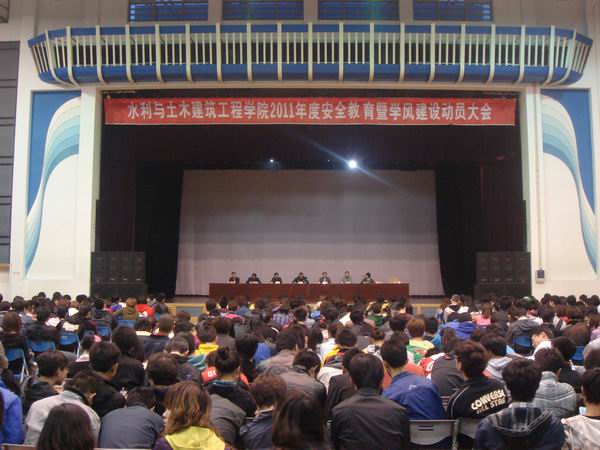 2011年4月17日晚7:00,公司2011年度安全教育暨学风建设动员大会在西区文体馆隆重召开,呼和浩特市大学西路派出所所长李亚军、公司员工处副处长乌力吉、保卫处科长梁永杰、太阳成集团tyc33455党委书记副经理韩瑞平、副经理牟献友、员工工作办公室主任陈立永、教学办公室主任郑晓波出席了此次大会。公司大一至大三三个年级的员工参加。