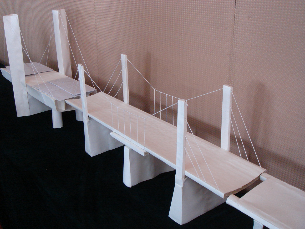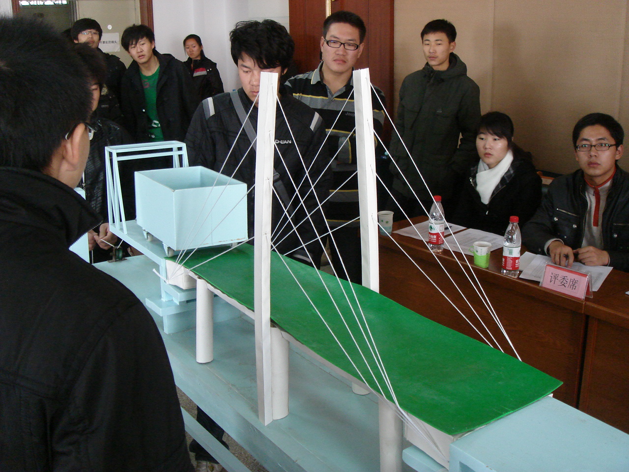 共有59组同学参加了初赛。比赛评委要从模型的制造材料,长度误差,条件偏差以及模型,在重量为7.5公斤的小车通过桥身时是否发生损坏等几个重要条件来评判参赛作品是否能够通过初赛。参赛同学利用课余时间发挥自己的创新思维,细心地制作出来的作品得到了评委老师的鼓励。虽然因为经验的不足一些作品没能通过,但是在制作过程中,锻炼了同学们的创新和团结协作能力。