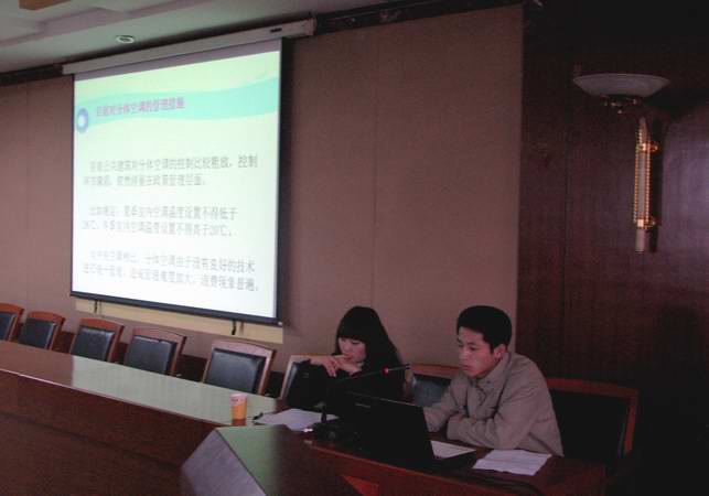 12月12日下午3:00,公司在水利楼502室举行了以“从我做起,从点滴做起,从每天做起,从周边做起”为题的节能减排科技竞赛。员工团委书记赵诚,副书记刘波,常委张仁杰、郝晓伟出席了本次比赛。姚娇转、石宇佳、刘?参加了此次活动并担任此次竞赛的评委。 此次参赛的选手主要为大一和大二的员工,经过初步筛选共有十四组进入决赛。他们均以PPT的形式向大家展示自己的作品并在五分钟之内向观众解说自己作品的优点及实用性。现场竞争气氛相当激烈,大家都从自己身边的生活小事里发现问题,并用节能减排的方式去处理这些问题。选手的作品层出不穷,例如红外感应水龙头、神奇的节能灯、节能饮水机等。让人印象深刻的是大家会从玻璃中发现问题,制造出会呼吸的玻璃,保温玻璃。当然我国是一个缺水的国家,针对这一问题他们发明出了雨水再利用系统。污水处理及二次水再利用是当前我国面临的一个较大问题,为了更好更环保的处理这一问题有员工设计出了地下污水处理系统赢得了在场评委及参赛选手的好评。