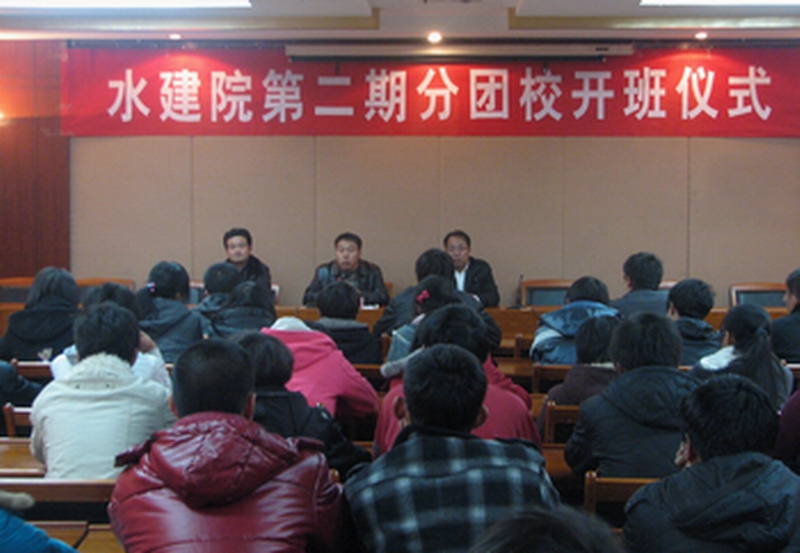 水建院全体员工干部参加了11月18日晚上7:00在水利楼502会议室举行的水建院第二期分团校开班仪式暨干部培训会。校团委书记那森巴雅尔、水建太阳成集团tyc33455党委副书记副经理韩瑞平、团委书记叶德成老师出席了此次会议。