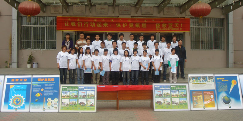 活动中,09级给排一班的同学们在内蒙古自治区环境科学研究院工作人员的带领下,观看了与此次活动相关的宣传板,内蒙古自治区环境科学研究院工作人员给同学们讲解了如何保护臭氧层,是同学们认识到臭氧层对人类生活的重要性。随后,09级给排一班的同学积极主动当起志愿者,在校园里分发宣传手册,呼吁大家共同来保护臭氧层。很多过往的同学都被活动所吸引,纷纷来到活动现场观看,并且在条幅上签下他们的名字,参与到保护臭氧层的队伍中。