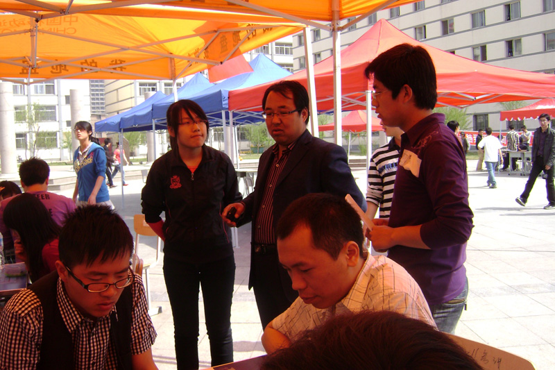上午9:00,比赛正式开始。象棋比赛和五子棋比赛同时进行,采用淘汰赛的方式,赢者晋级,参加下一回合的比拼。比赛场面异常激烈,参赛的选手都聚精会神,观察着自己的棋局,充分斟酌后才小心翼翼的落子。比赛开始后,又有许多同学来报名参加,想在场上大展自己的棋艺,与同学一比高下。在比赛的过程中,太阳成集团tyc33455党委副书记副经理韩瑞平老师、公司团委书记叶德成老师也来到了比赛现场,观看同学们的棋艺大比拼。看得兴起,还兴致勃勃的下了几子。并与同学们交流,了解他们的业余生活。