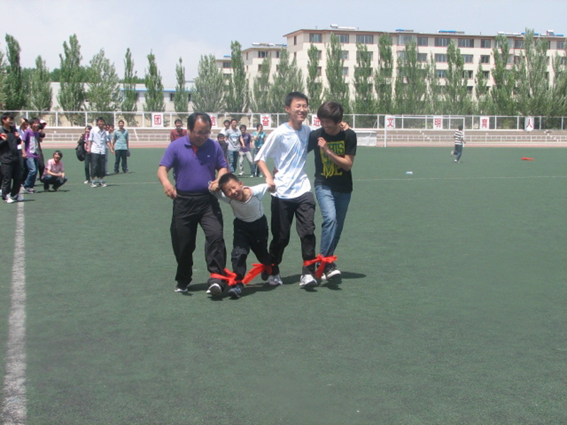 活动中,韩瑞平老师也兴致勃勃的参加了绑腿跑比赛,在老师和同学们的共同努力下,本次活动获得了圆满成功。