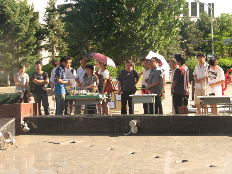 在开幕式结束后,与会的领导和老师以及参加开幕式的员工来到水里楼前的艺术作品展区,观看同学们亲手制作的建筑模型和钢笔画展览。
