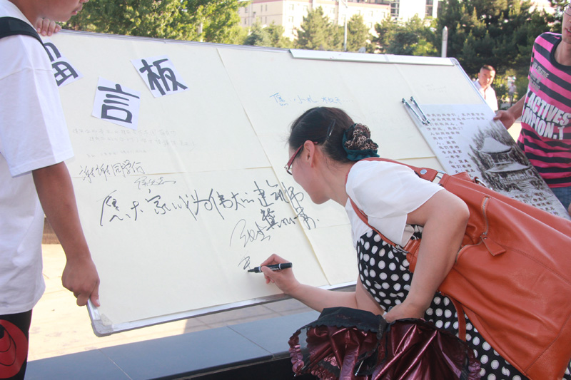在展览的最后,公司副董事长侯先志、人才招聘处处长冀兆荣、团委书记那森巴雅尔等校院领导在留言板上签字,祝愿本届建筑艺术节能够去大圆满的成功,同时希望09级建筑班的同学们能够再接再厉,设计出更合理、美观、实用的建筑艺术模型。