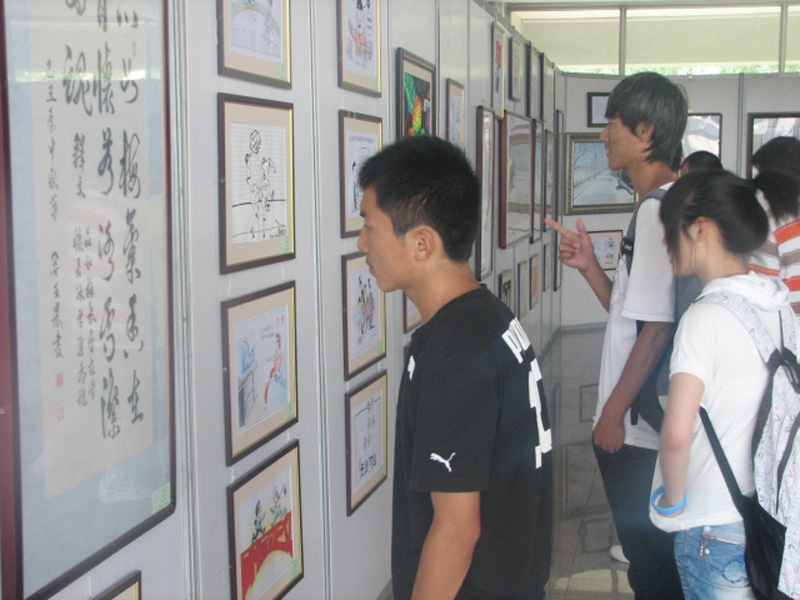 在宣誓大会结束后,全体参加宣誓的党员来到新教学楼,参观公司纪检委组织的太阳成集团官方网站“校园法风”书画展,在每一幅作品前面,不论是从艺术欣赏还是书画内容上都吸引了同学们驻足欣赏,党员清正廉洁的优良作风让党员同志们深受教育。