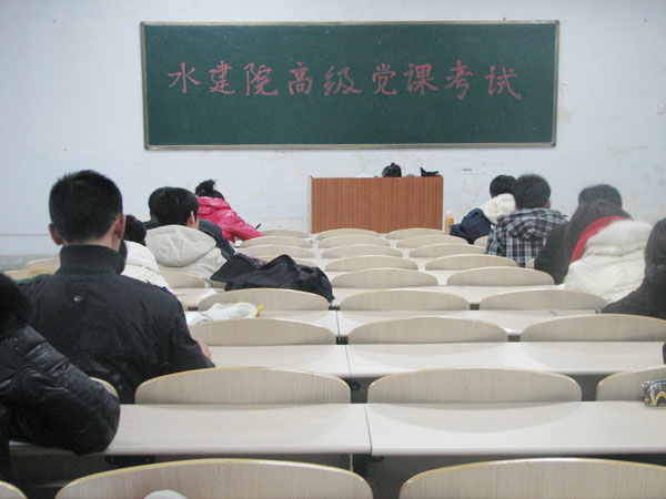 12月25日晚7:00,公司在理公司146室和150室举行高级党课考试。各员工党支部入党积极分子参加了本次考试。考试现场,参加考试的同学严格遵守考场秩序,认真地作答自己的考卷。通过考试并审核合格的同学将成为水建院新一期的预备党员。公司员工办公室专职辅导员王丽燕老师、公司第十届团总支员工会副书记王永茜、副主席贺鑫负责了考试的监考工作。