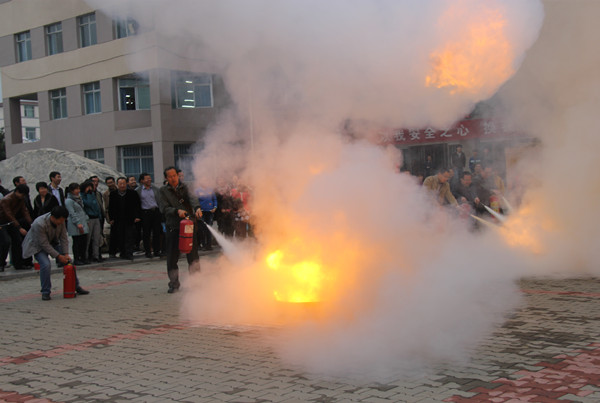 活动开始,保卫处的李老师先为大家介绍了三种灭火器的作用及其使用的注意事项,并做了简单的操作示范。李老师强调:公司多实验室、多易燃点,应从平时就注意消防安全。我们不仅要从校园内注意消防安全,在家里、车上都应该加以重视,做到防患于未然。消防知识讲解完毕后,防火演练开始,现场燃起提前设计好的熊熊火焰,每位教师都积极参与到演练中,拿起灭火器扑灭了熊熊火焰。场地上是黑烟与白烟的交织,最终上空弥漫着白烟。活动结束了,但是老师们参加活动的热情还没散。