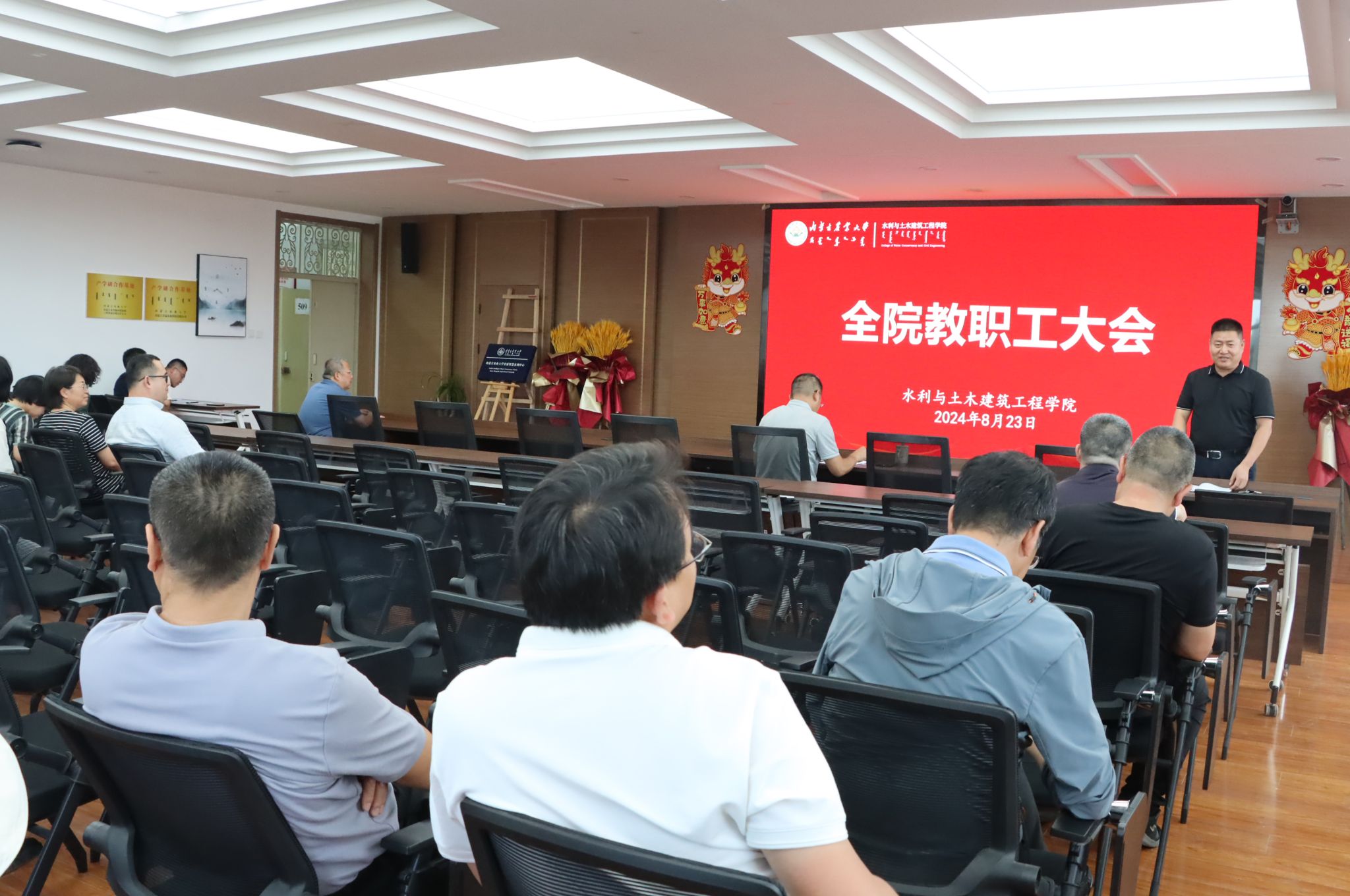 为确保新学期各项工作起好步、开好局、谋好篇,2024年8月23日下午,公司在水利楼502召开全院教职工大会,会议由公司经理李昊主持。