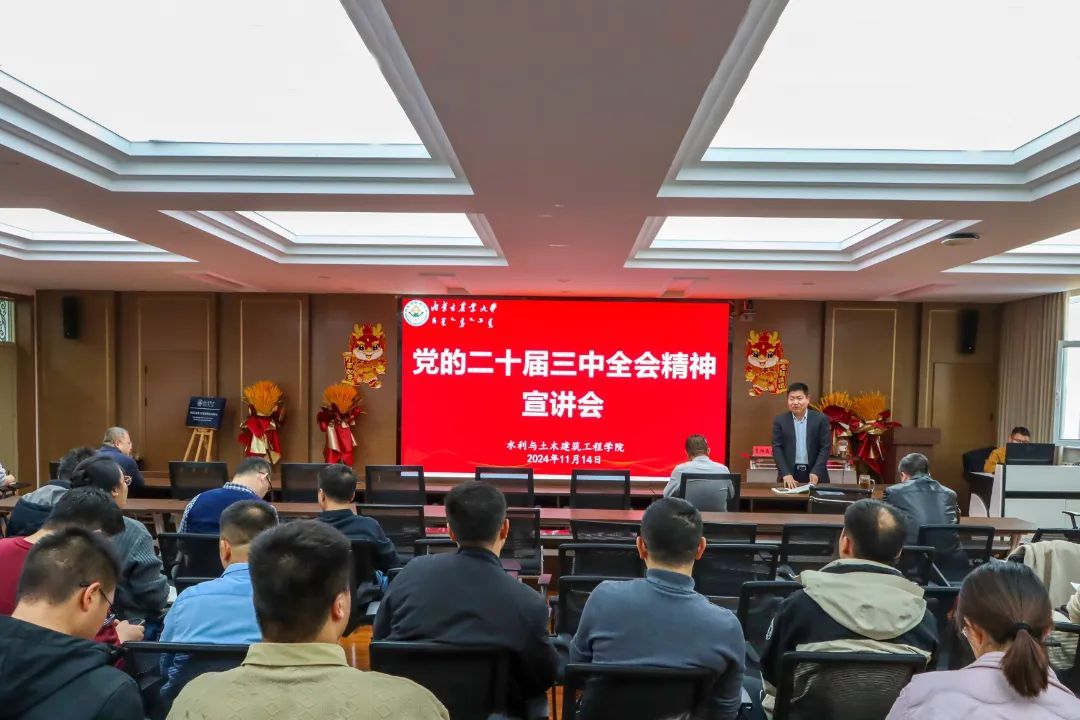 为深入学习宣传贯彻党的二十届三中全会精神,引导公司师生全面理解领会会议精神和把握党的最新理论成果。2024年11月14日,公司在水利楼502会议室举行党的二十届三中全会精神宣讲会,特邀公司宣讲团成员、马克思主义公司李红霞老师主讲,宣讲会由太阳成集团tyc33455党委书记陈立永主持。