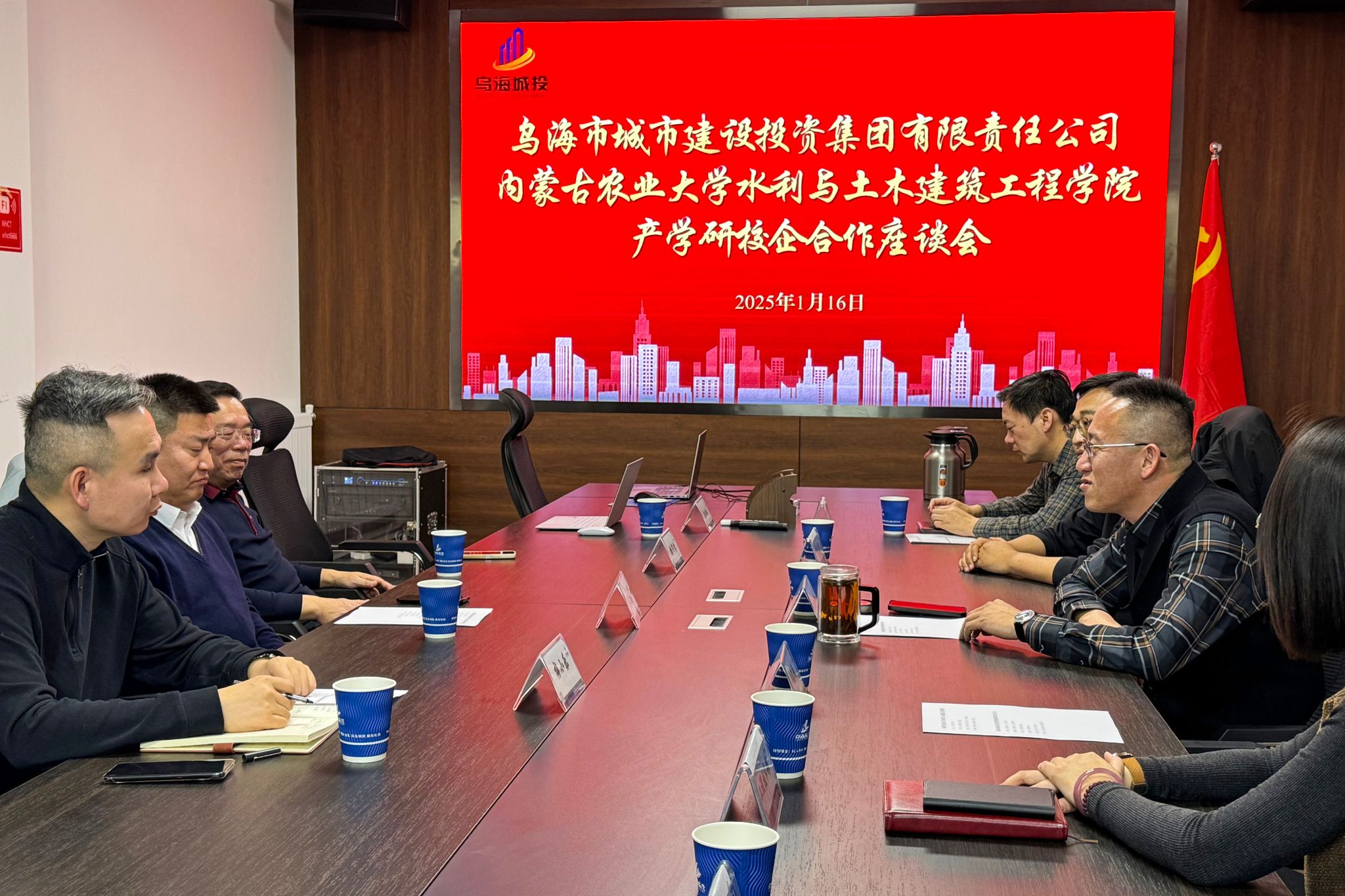 在与乌海市城市建设投资集团有限责任公司的交流座谈会上,双方重点讨论了如何加强企业在人才培养过程中的参与度。党委书记陈立永表示,在人才培养过程中,企业的深度参与能够为员工提供宝贵的工程项目经验,对进一步提升实践操作能力、创新思维和就业竞争力等方面具有重要意义。双方在专业课程设置、共建实习实践基地、企业导师制度等方面开展深度合作达成一致,并提出具体实施方案。调研期间,到企业生产一线进行了参观。