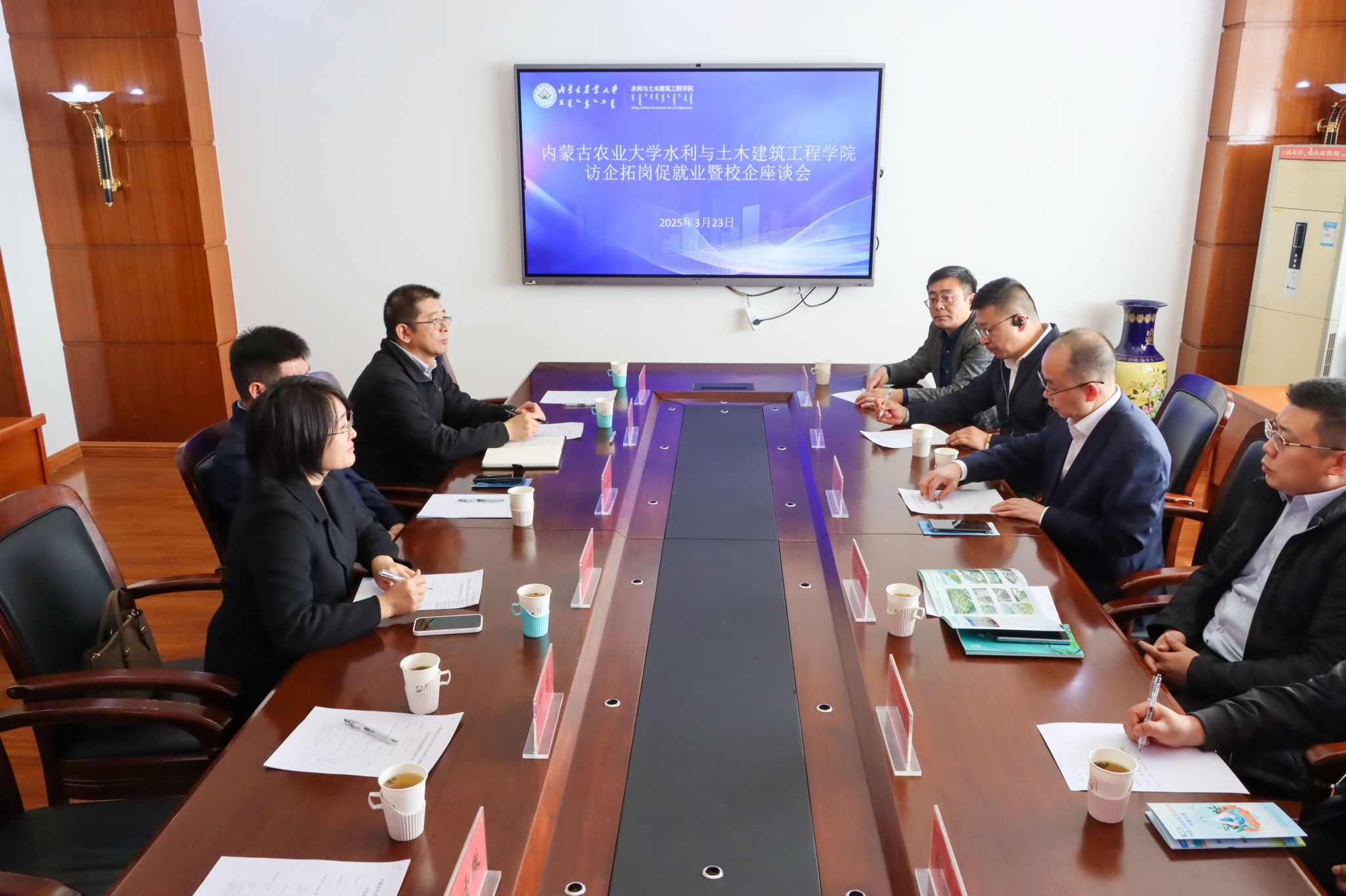 为深化产教融合,促进校企合作,2025年3月23日,内蒙古左马自控水务设备有限公司、中国铁工投资建设集团有限公司来院开展座谈交流。太阳成集团tyc33455党委书记陈立永、经理李昊、党委副书记郑晓波、副经理马龙,以及内蒙古左马自控水务设备有限公司董事赵敏、中国铁工投资建设集团有限公司辛峰和校企双方相关人员参加。