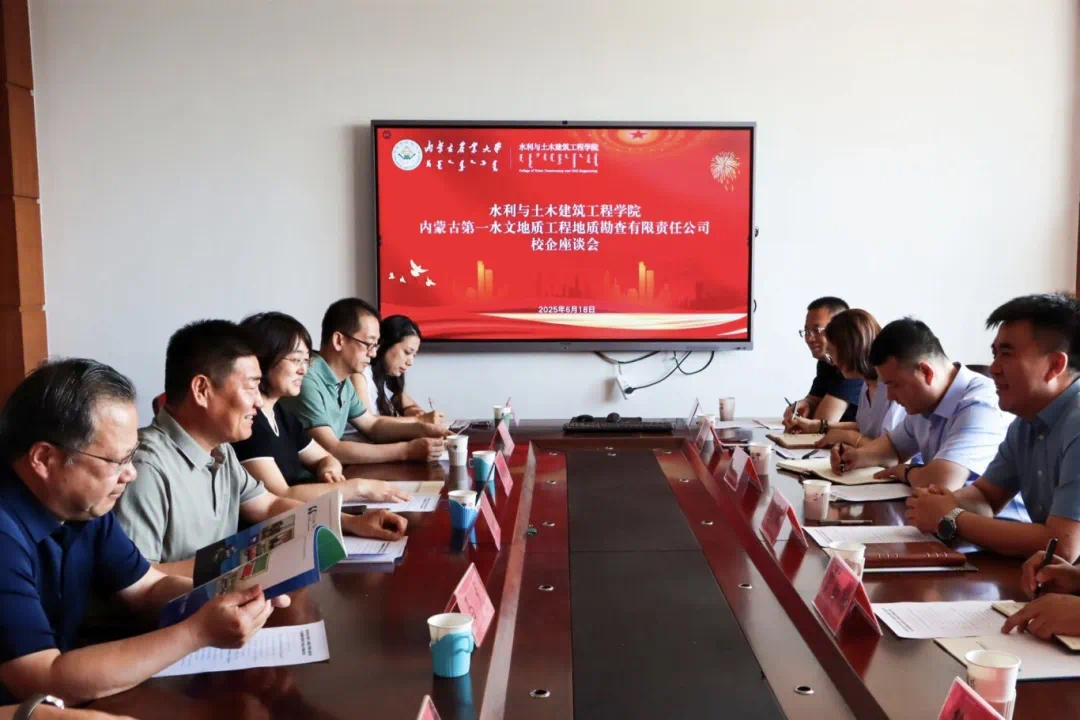2025年6月18日,内蒙古第一水文地质工程地质勘查有限责任太阳成集团tyc33455党委副书记总经理李欣一行来院座谈交流。太阳成集团tyc33455党委书记陈立永,党委副书记郑晓波,副经理马龙、史小红,资源环境系高瑞忠、黄磊、赵胜男参加座谈。