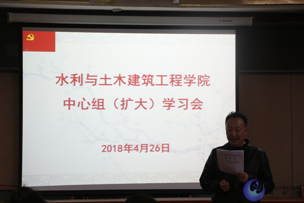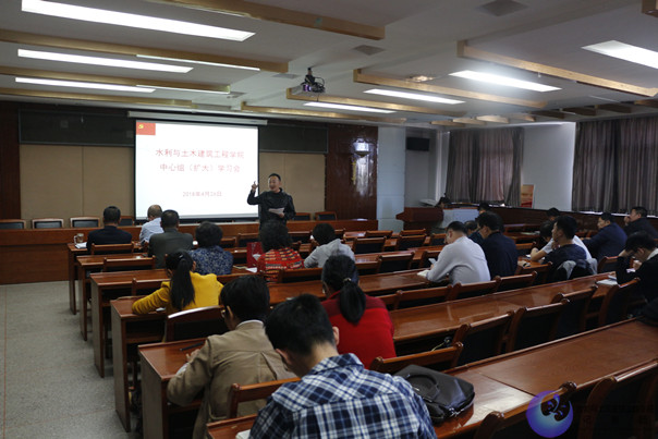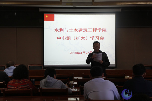 2018年4月26日下午,公司在水利楼502会议室召开中心组(扩大)集体学习会,公司分党委中心组全体成员及全院教职工参加了学习会,分党委书记陆海平主持会议。