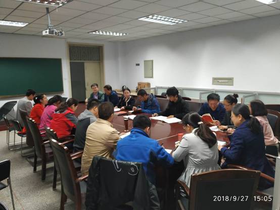 2018年9月27日(周四)下午3:00,土木工程系党支部组织本系教职工在水利楼404室学习文件精神。由裴成霞同志主持会议。