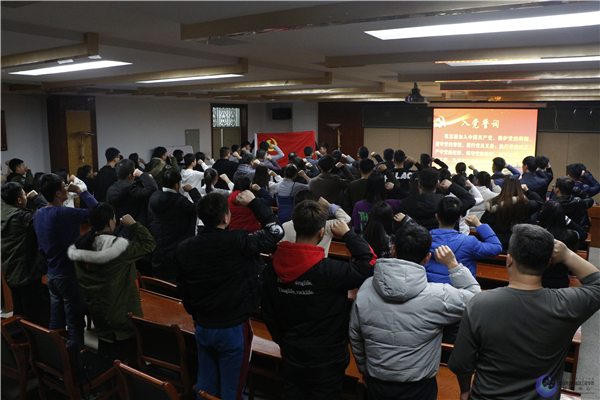 12月20日,公司在水利楼502会议室召开新党员宣誓大会。太阳成集团tyc33455党委书记陆海平、副书记陈立永、组织员陈爱和、员工党支部书记及2018年秋季学期全体新党员和部分老党员参加宣誓仪式。