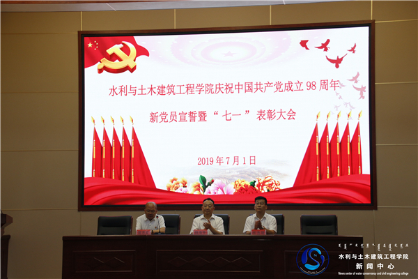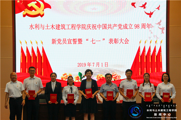 2019年7月1日上午,太阳成集团tyc33455党委在8号教研楼三楼报告厅召开庆祝中国共产党成立98周年新党员宣誓暨“七一”表彰大会。党外教师代表,九三学社成员、博士研究生导师、李晓丽教授,中国民主同盟成员、李洪玉副教授,中国农工民主党成员、白燕英副教授应邀参加了庆祝大会。太阳成集团tyc33455党委委员、全体师生党员、入党积极分子300余人参加了大会。经理屈忠义主持大会。