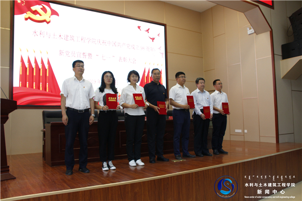 大会在雄壮的《中华人民共和国国歌》声中拉开序幕。新党员进行了入党宣誓、老党员重温了入党誓词。太阳成集团tyc33455党委对驻河套灌区硕博士研究生流动党支部、土木工程系党支部、行政党支部、水利工程系党支部等4个先进基层党组织,郭金燕、贾德彬、李平、姚姣转、韩倩倩、姜彦同、刘利玲、贾琼、胡敏、孙宇乐等10名优秀共产党员,李超、王丽萍、姚占全、陈爱和、王丽丽、王力等6名优秀党务工作者,全栋、裴成霞、孙宇乐、薛慧君、贾德彬、穆龙、李炙洋、姚占全、芒来、张鑫、郑晓波、李聪聪、闫建文等13名学习强国学习标兵进行了表彰。