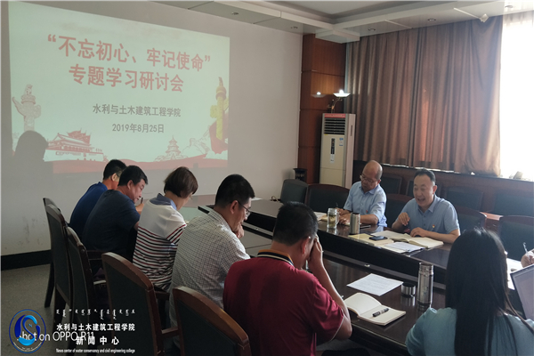 8月25日,太阳成集团tyc33455党委中心组召开了“不忘初心、牢记使命”专题学习研讨会,公司领导依次作了典型发言,党委委员、教师党支部书记也在研讨会上发了言,大家结合中心工作开展了热烈讨论。其中,党委书记陆海平作了“不忘初心、牢记使命,以强有力党建引领和支撑教学科研管理服务工作”主题发言;经理屈忠义作了“关于一流学科、一流本科建设双万计划的思路和对策”主题发言;党委副书记杨逸隆作了通过“不忘初心、牢记使命”主题教育深入推进公司学风建设工作主题发言;党委组织员陈爱和作了“不忘初心、牢记使命主题教育心得体会”主题发言;副经理李昊作了“不忘合作初心,继续携手前行”主题发言;党委委员王丽萍作了“守初心、担使命、找差距、抓落实”主题发言;党委委员郑晓波作了“对照先进找差距,开拓创新抓落实”主题发言;党委委员姚占全作了“切实贯彻守初心、担使命、找差距、抓落实总要求,做好教学科研工作”主题发言;水利工程系党支部书记李超作了“基于工程教育专业认证模式下《水力学》课程教学改革”主题发言。