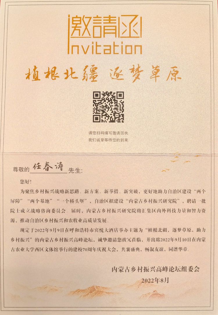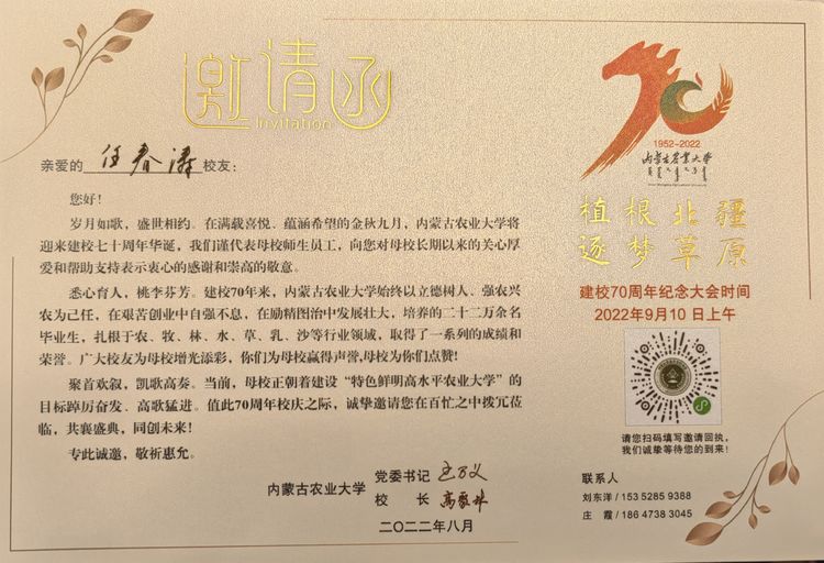 拳拳赤子心,浓浓桑梓情。我是万千农大学子中的平凡一员,能够接到公司的邀请函,参加这次隆重的校庆大会和内蒙古乡村振兴高峰论坛等活动,感到非常激动和骄傲!