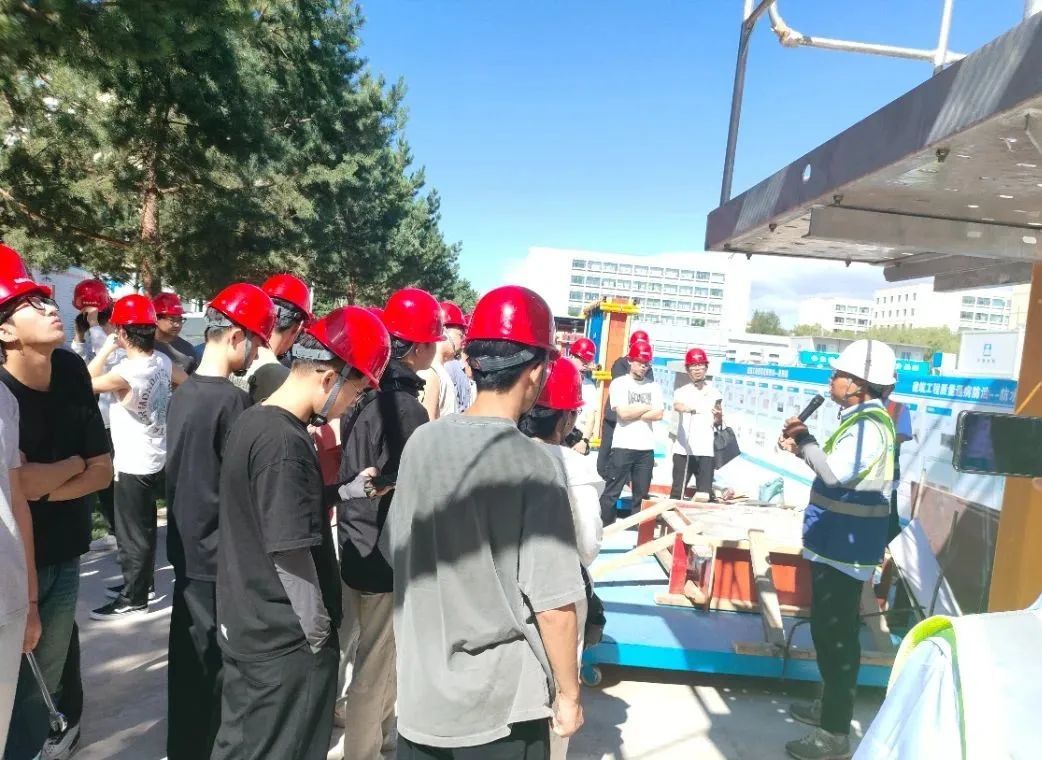 新校区公寓楼项目由中国建筑第三工程局承建,项目经理首先做了参观工地的安全教育宣讲,全体人员共同参观了样板间、智慧工地管理平台、触电体验区、撞击体验区、急救体验区等,让同学们近距离感受项目施工中注意的很多细节问题,突出安全施工的重要性。活动期间公司师生与基建处教师围绕工程各方面问题和党建引领、支部共建等工作进行深入交流。