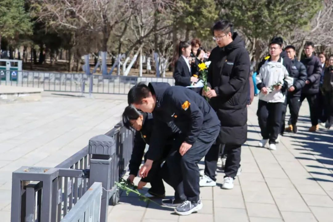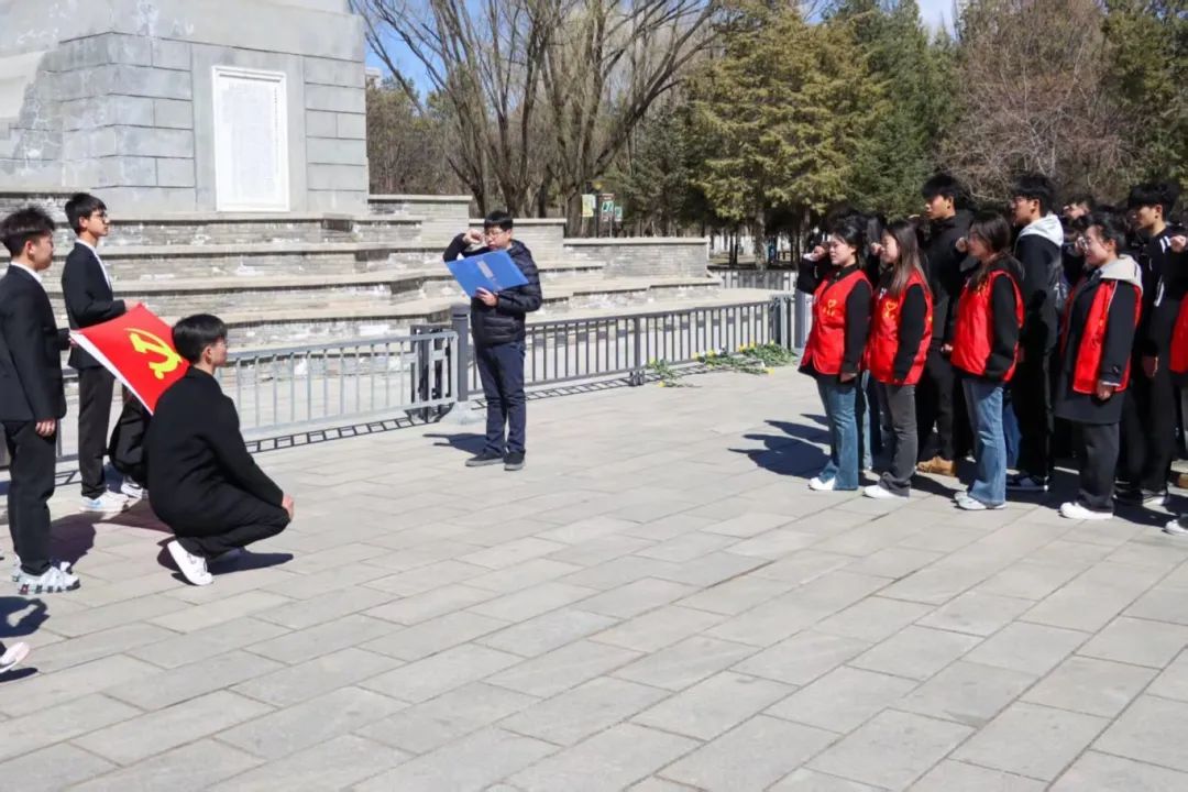 翠柏青松伴英烈,清明祭扫缅英魂。上午9时许,祭扫活动在庄严肃穆的氛围中开始。全体成员整齐列队于烈士纪念碑前,齐声高唱国歌,并向革命先烈敬献鲜花、默哀致敬。在党支部书记的带领下,全体党员重温入党誓词,铿锵誓言表达了新时代青年党员继承先烈遗志、勇担时代使命的坚定决心。